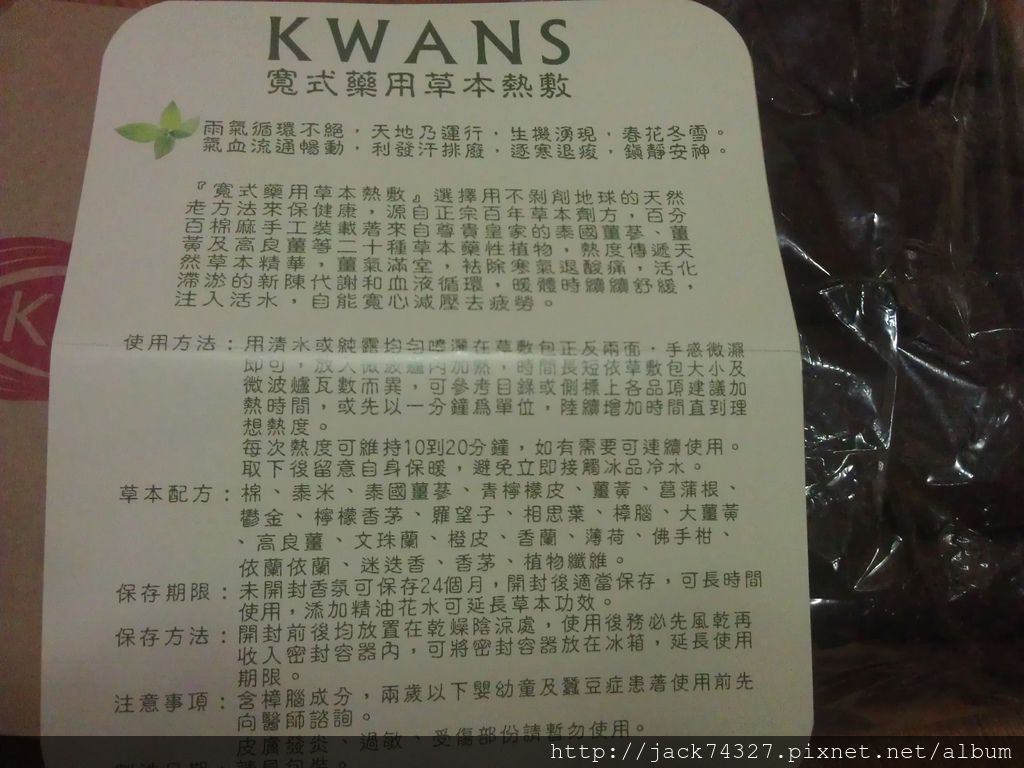 試用文~KWANS寬式藥用草本熱敷