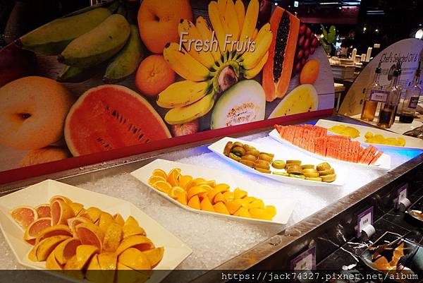 現場有提供多種的當季水果,新鮮多汁,