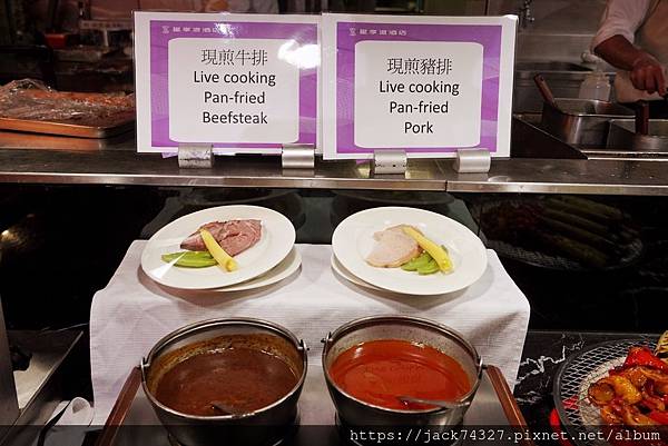 在熱食區絕對要來份現煎牛排跟豬排,