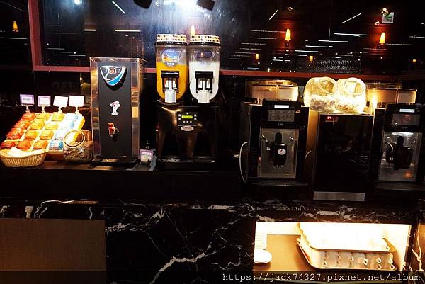 飲料區提供了各式茶包茶飲、咖啡機(美式、拿鐵、濃縮、拿鐵等)、各式果汁,