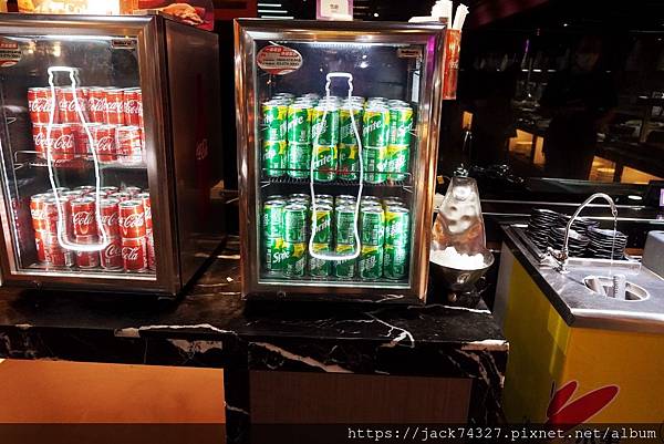 另外一旁也有瓶裝七喜、可樂可以自行取用。