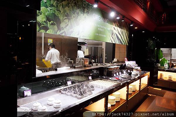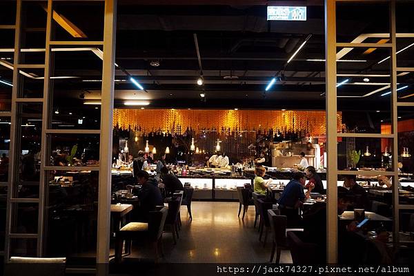 一進到餐廳會先看到到的是一個長方形的大型吧台,四周都可以取餐。