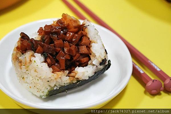 日式風格的三角飯糰,店家嚴選了的關山米粒粒飽滿Q彈,獨特的米香吃起來越嚼越香,
